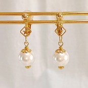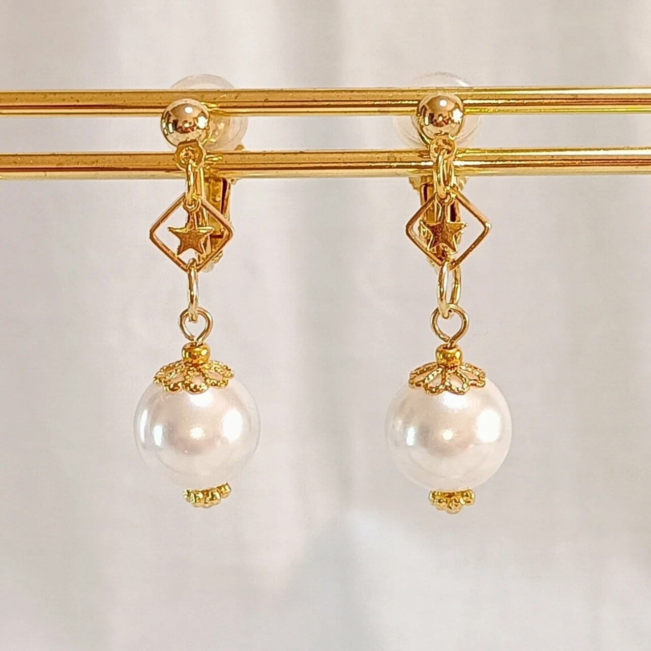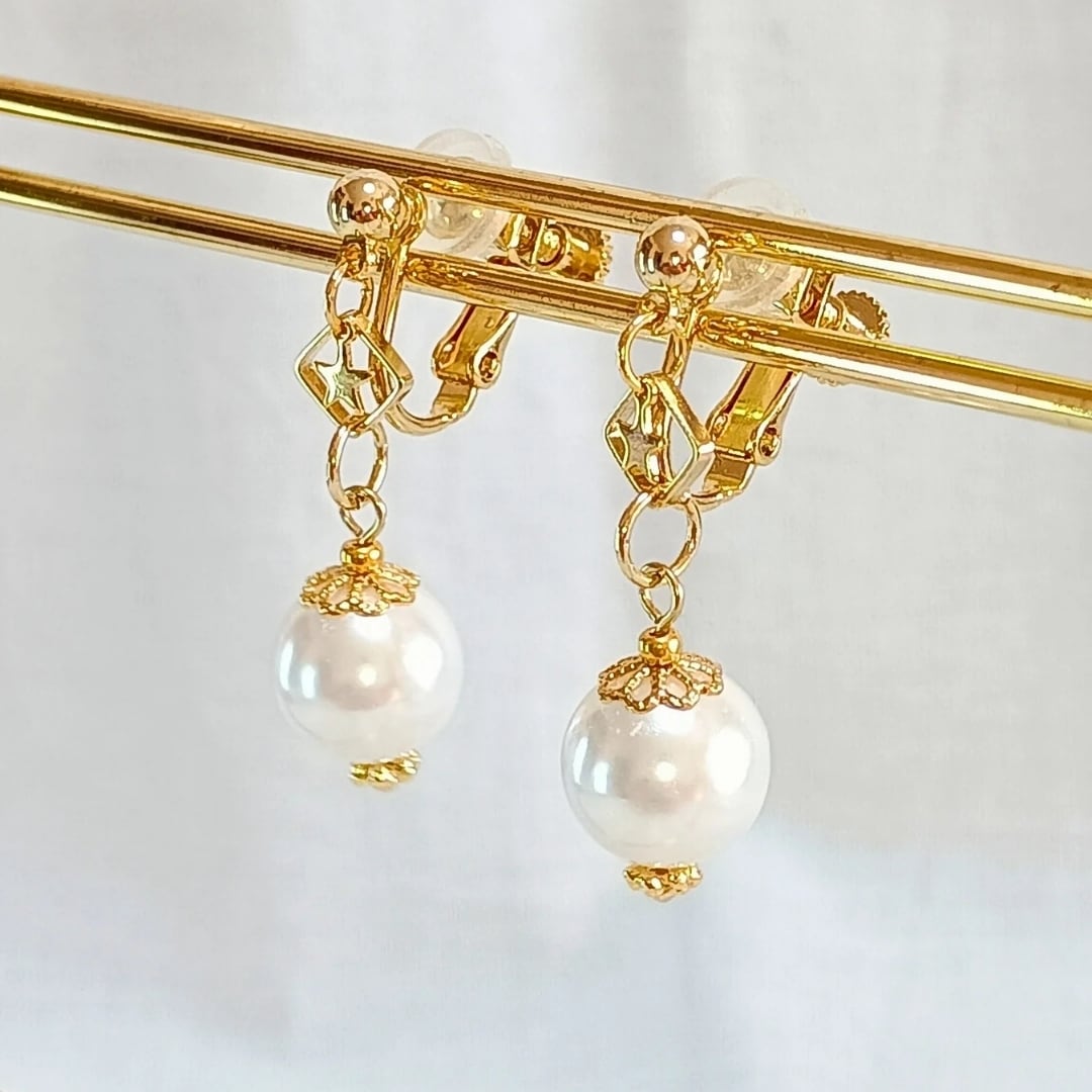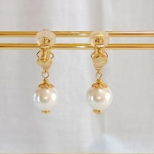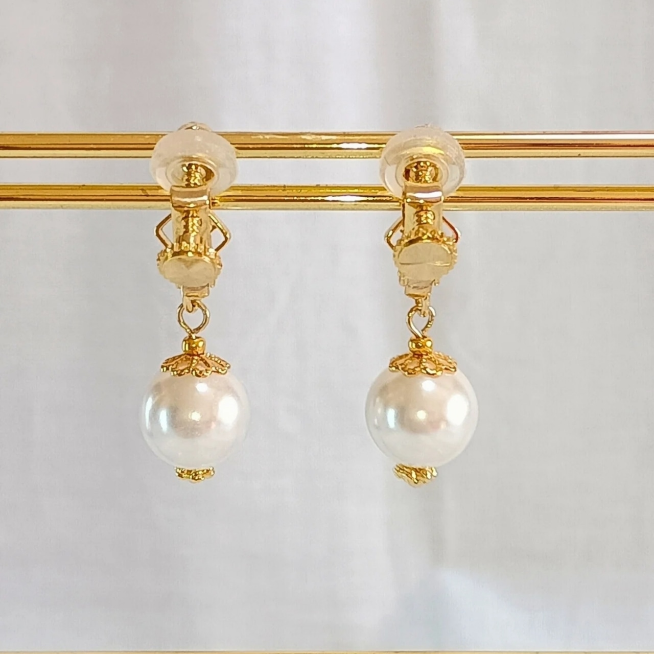 [定番]イヤリング樹脂パール10mm(ホワイト/ライトゴールド)