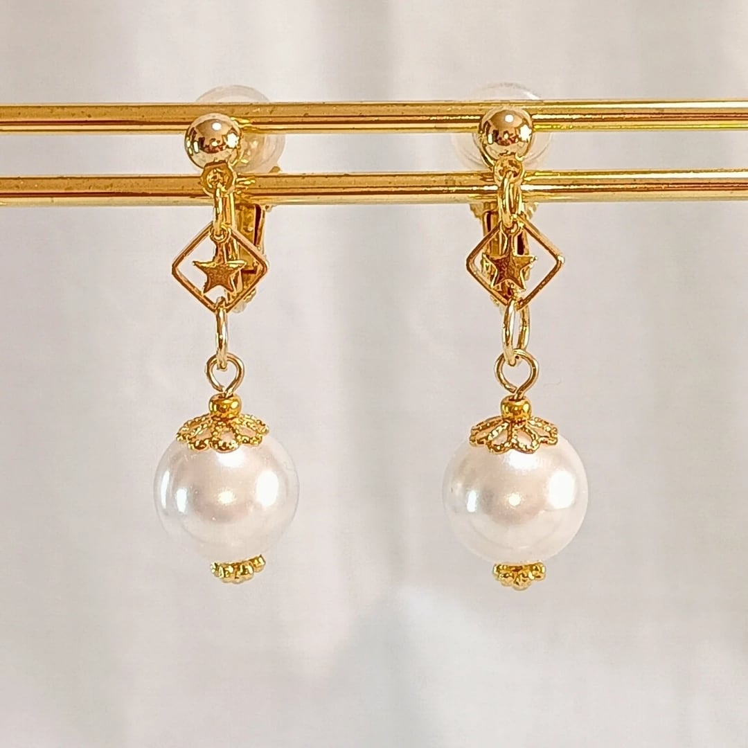 ●イヤリング金具:タテ13㎜×奥10㎜、丸玉4㎜